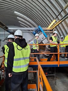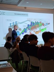 The next stage of the visit took place at the PLC installation, where students witnessed the process of recovering raw materials from plastic waste. They followed the material’s transformation — from discarded waste to a valuable resource ready for reuse.
